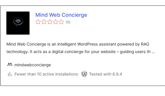 Mind Web Concierge è ora su WordPress.org, ufficialmente approvato per integrare rapidamente funzionalità di intelligenza artificiale.